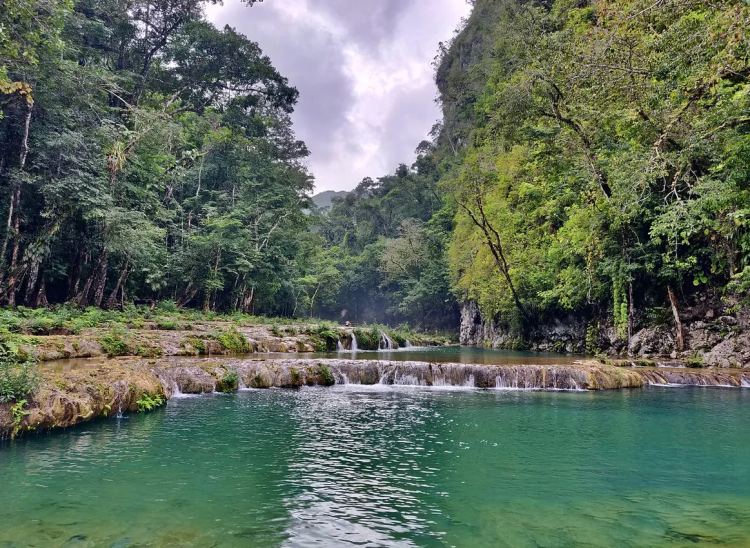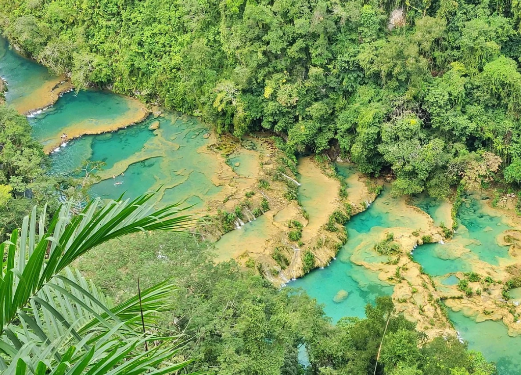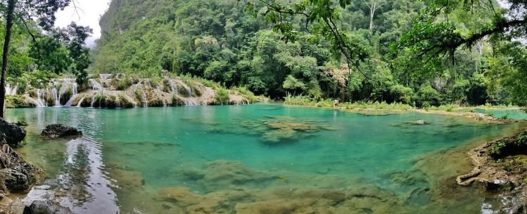 Semuc Champey, est un site naturel ou l’on trouve une enfilade de piscines aux eaux turquoise en cascades qui brillent comme des émeraudes au beau milieu de la jungle luxuriante du Guatemala. Un des plus beaux sites du pays qui offre une courte mais palpitante randonnée dans la forêt tropicale qui se termine par une baignade absolument divine dans des bassins paradisiaques.